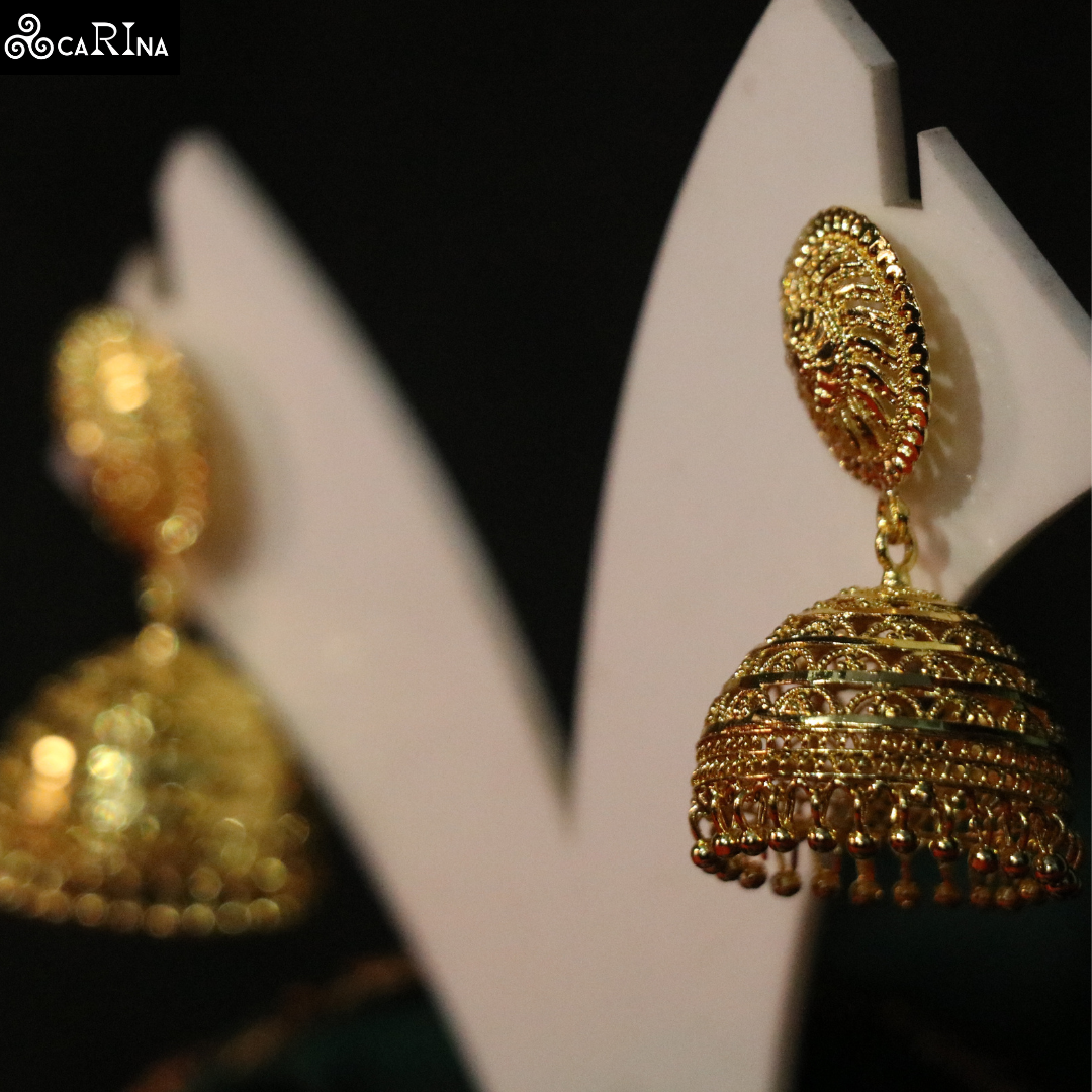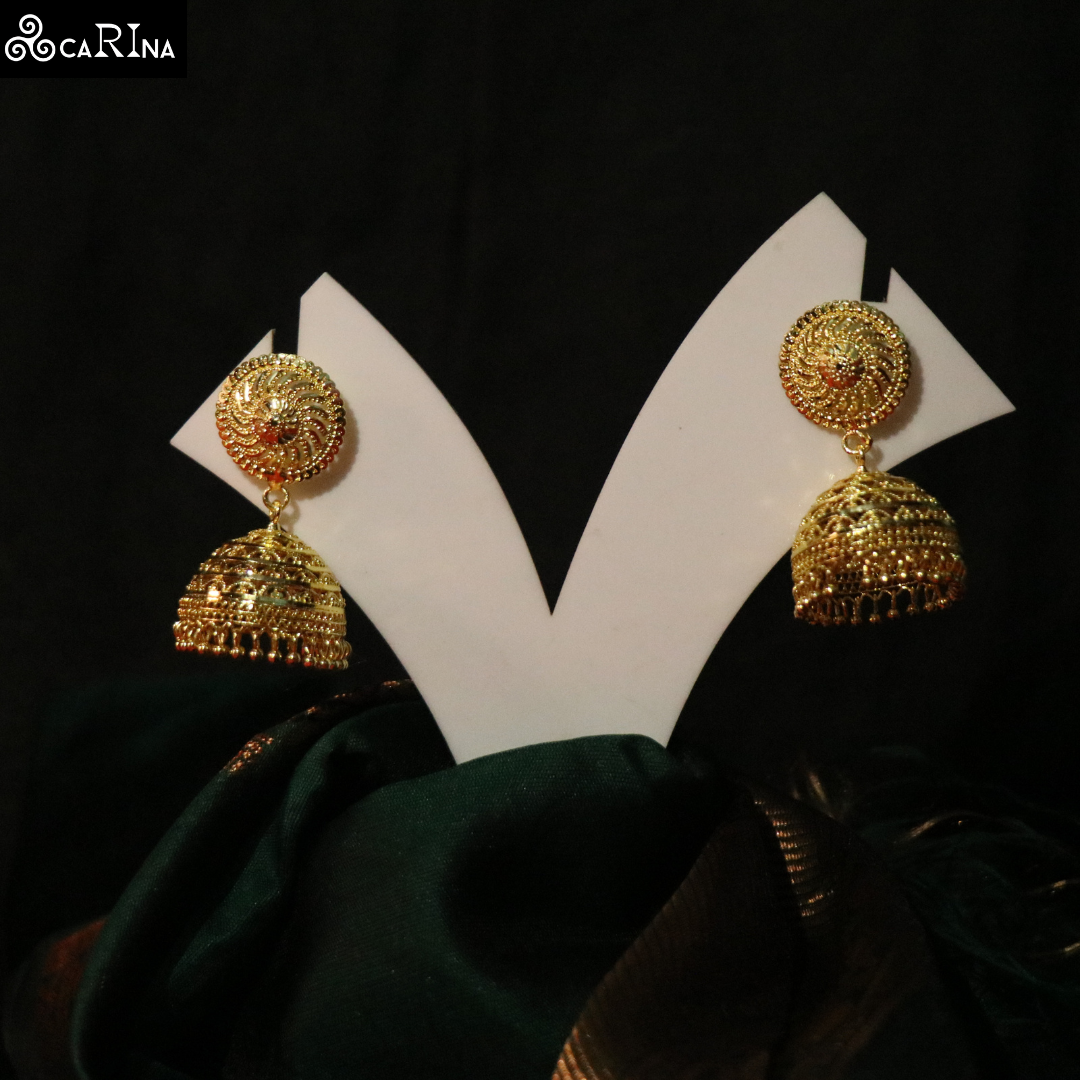 Enhance your traditional look with these exquisite Classic Gold Jhumkas, designed for elegance and grace. Featuring a beautifully detailed circular stud and a finely crafted jhumka drop, these earrings add a touch of royalty to any ethnic outfit. The intricate gold-plated finish and delicate hanging beads make them a must-have for weddings, festivals, and special occasions.