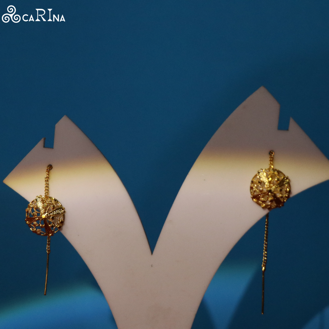 Step into the spotlight with our mesmerizing Golden Orbit Threaders — a contemporary twist on traditional elegance. Featuring intricately designed spherical orbs, these earrings gracefully hang from delicate golden threads, creating a stunning floating effect that sways with your every move.