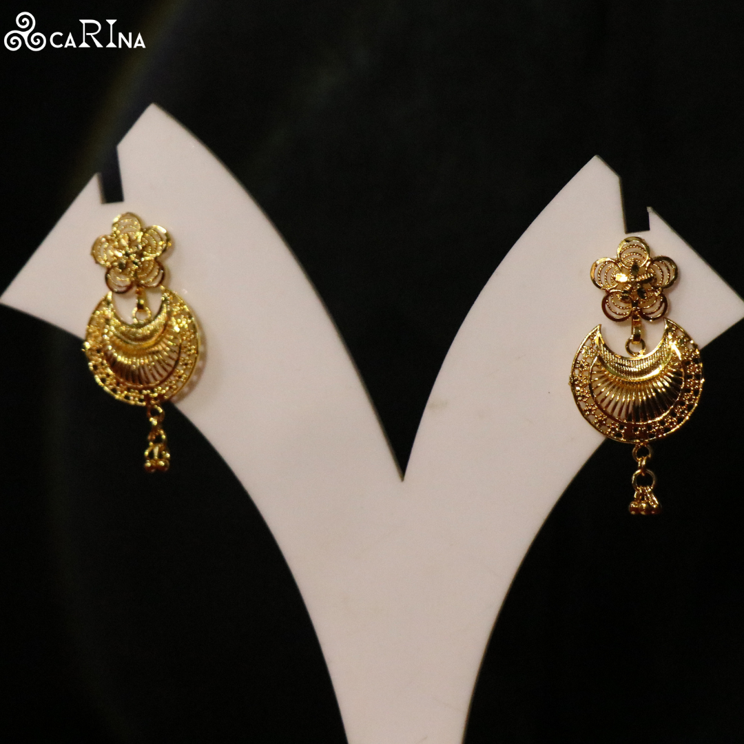 Step into elegance with these Royal Petal Drop Earring, designed to add a graceful touch to your ethnic ensemble. These earrings feature a delicate floral stud that beautifully connects to an intricate crescent-shaped dangler, finished with a charming hanging bead. The detailed craftsmanship and antique gold finish make them perfect for festive occasions, weddings, or cultural events. Pair them with sarees, lehengas, or salwar suits for a stunning traditional look.